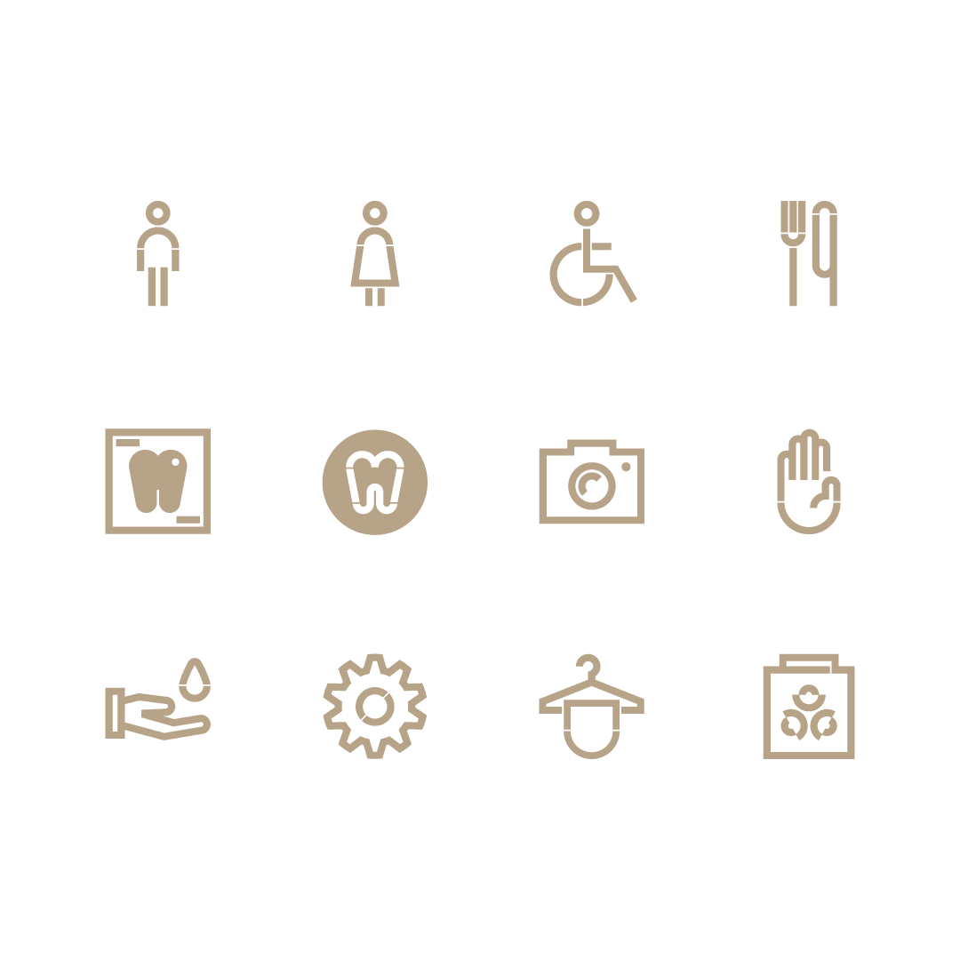 The icons were created by using the smile shape of the symbol as a structural element. With this concept, we guarantee consistency in the visual identity in another medium where the brand cohabits.